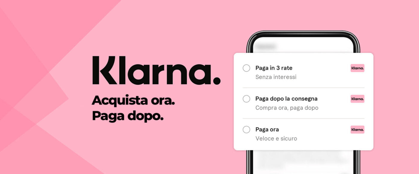 Utilizziamo Paypal, Carta di Credito o Debito e Pagamento alla Consegna oppure Klarna a 3 comode rate